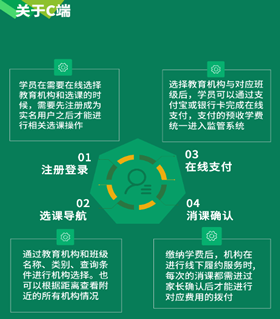 U培+:平臺(tái)是基于“民辦教育全場景綜合服務(wù)+資金監(jiān)管”的互聯(lián)網(wǎng)+模式,通過“行政管理+金融監(jiān)管”的結(jié)合,實(shí)現(xiàn)對(duì)民辦教育機(jī)構(gòu)的辦學(xué)審批、師資建設(shè)、教學(xué)質(zhì)量、服務(wù)質(zhì)量、誠信監(jiān)督、學(xué)費(fèi)監(jiān)管、異動(dòng)預(yù)警等全生命周期管理。